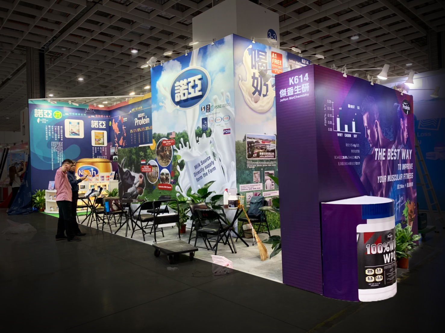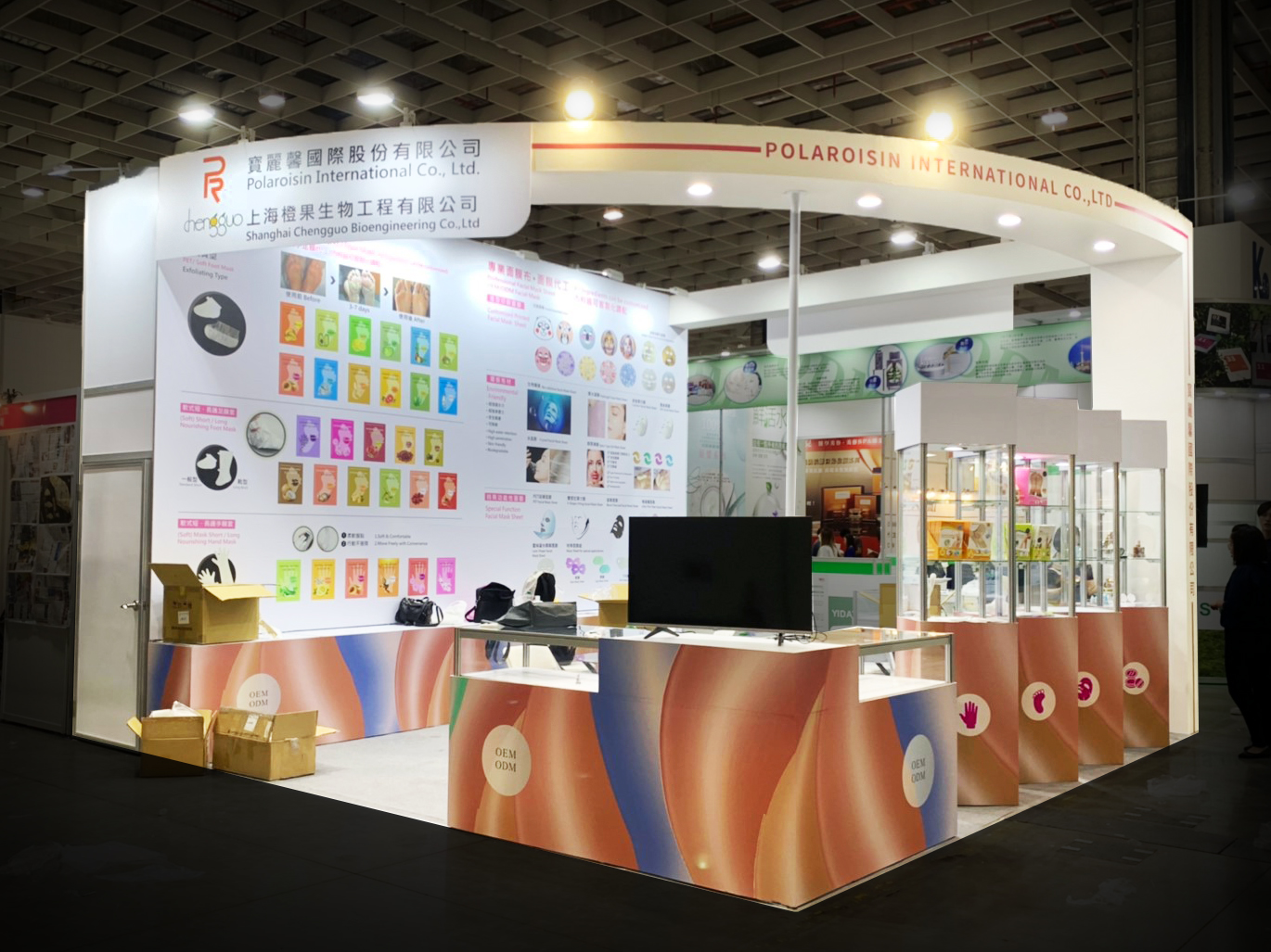 攤位設計我們以粉紅色為基底,讓竹門國際在生技展中特別顯眼